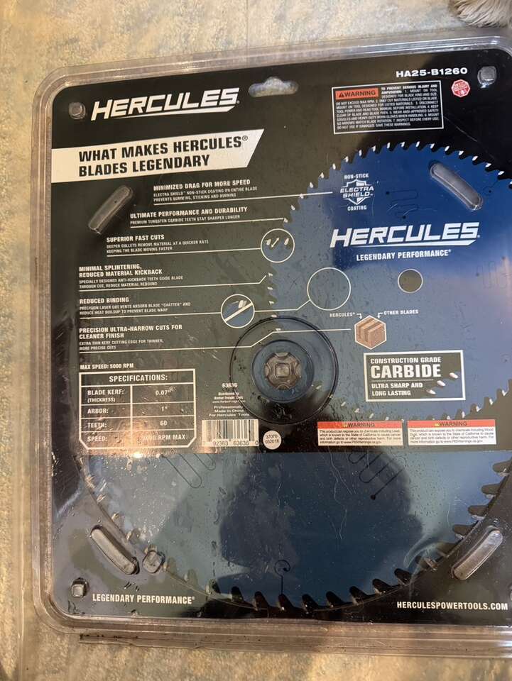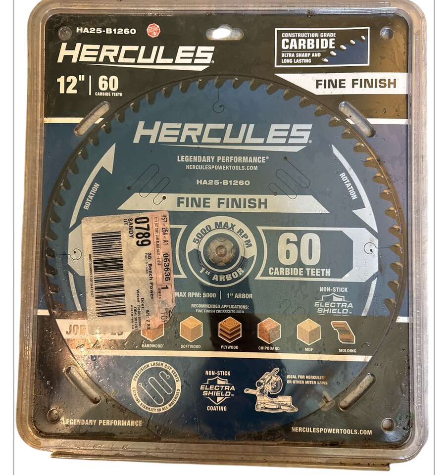 Venmo12 in., 6OT Fine Finish Miter Saw Visit > Blade 4.9 (154 SKU(s) 63636 Brand HERCULES Model HA25-B1260 Blade Kerf (Thickness) 0.11 in. Application hardwood, softwood, plywood, chipboard, molding and MDF Arbor Size 1 in. Blade Material Steel Blade Size 12 in. Blade Type Fine Finish Speed (max.) 5000 RPM Number of Teeth 60 Product Weight 2.60 lbs. Shipping Weight 3.20 lb.