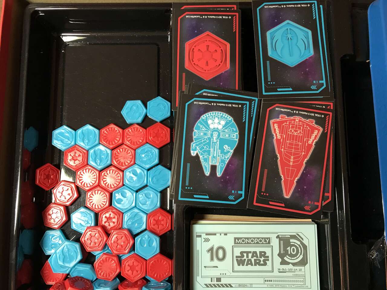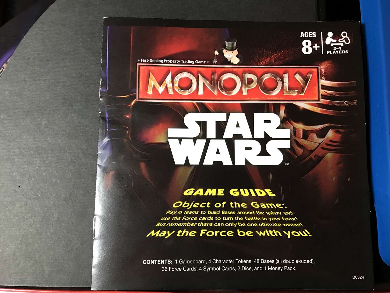 Star Wars Monopoly. Game has not been used but has been opened and comes with dice but not original dice.