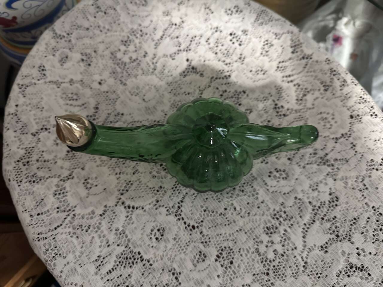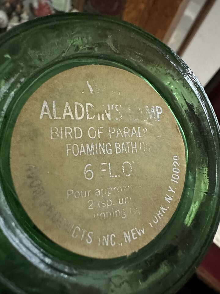 VenmoAVON had it right. Put your product in a pretty bottle and your customers will keep it for 50 years! In the 70's AVON produced bottles of every shape and size from a car to Betsy Ross. This one I think my mom bought in 1972. It had Bird of Paradise Foaming Bath Oil in it. The beautiful green glass glows in sunlight. The flame is the cap.