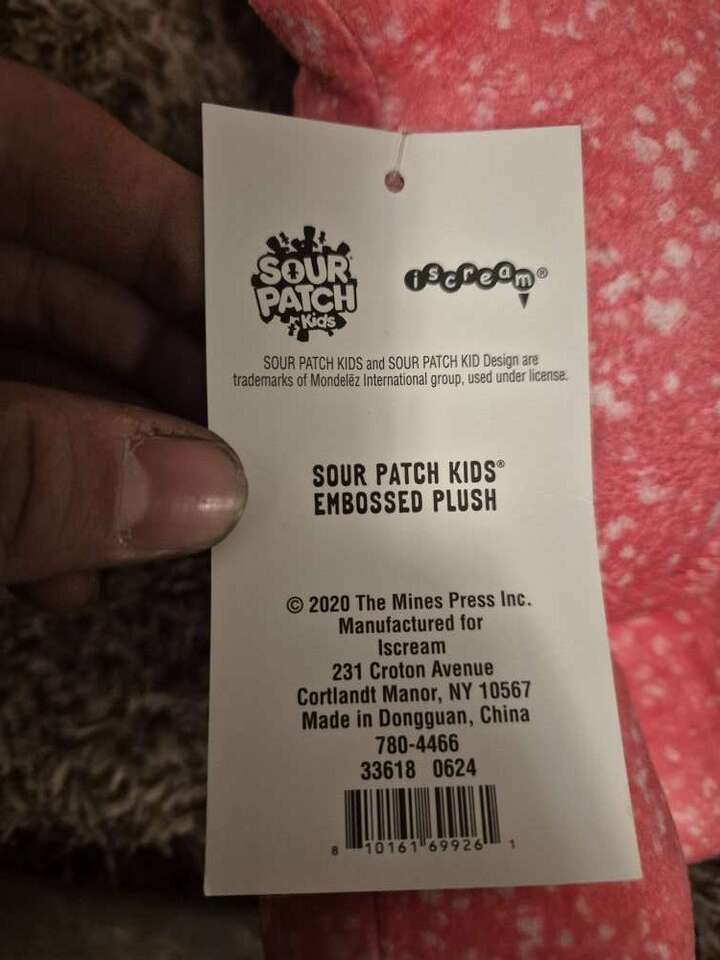 Limited edition Pink Sour Patch Kids plush, about 15 inches tall.