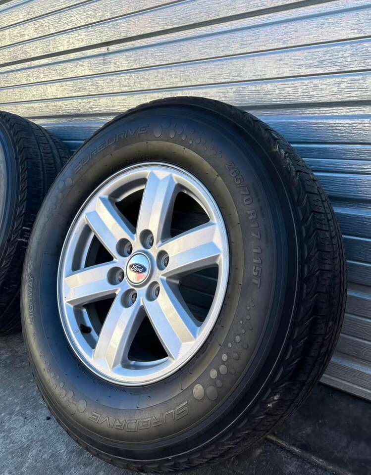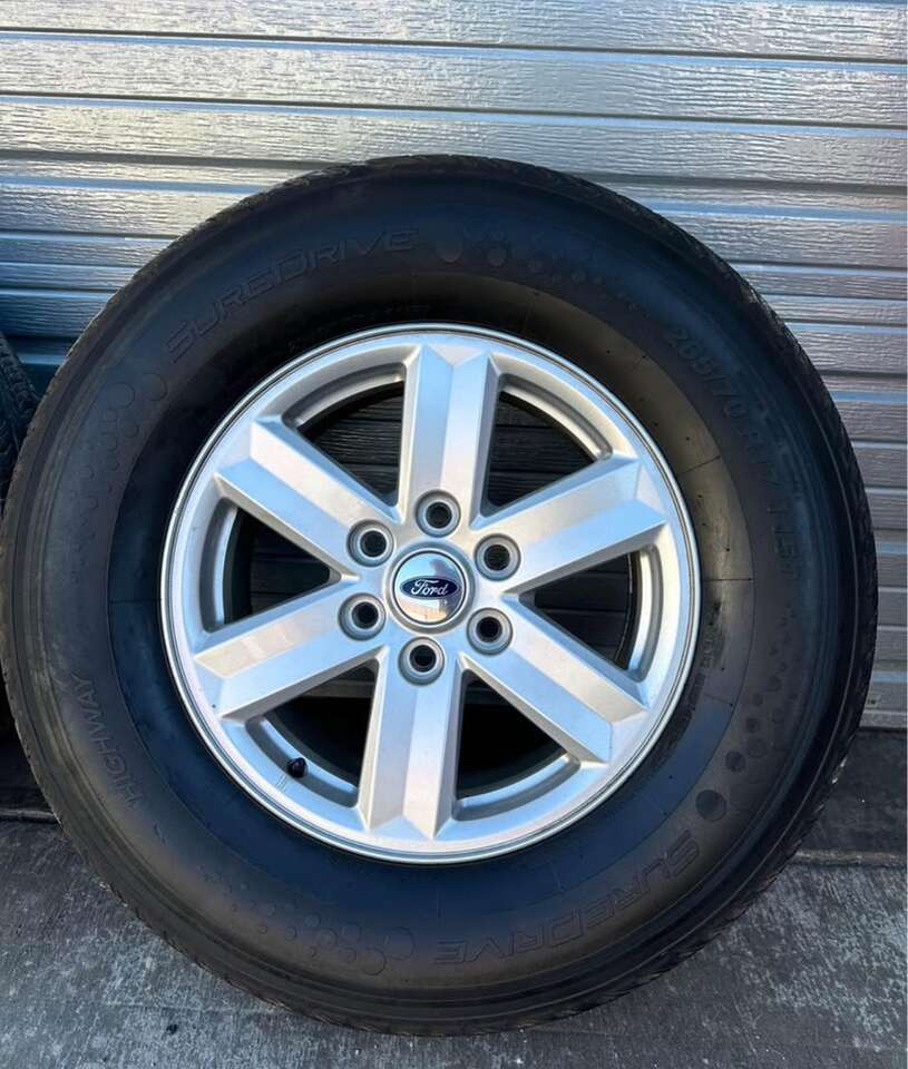 Wheels are 17” OEM take off wheels off a ford f150 pickup truck. Wheels are in fantastic condition, no curb rash, major dings, or major damage on the wheels. All center caps and lugnuts are included as well. These also have TPMS Tires are 265/70/17 suredrive tires, nice riding tires, no patches or plugs, tires have tons of life left