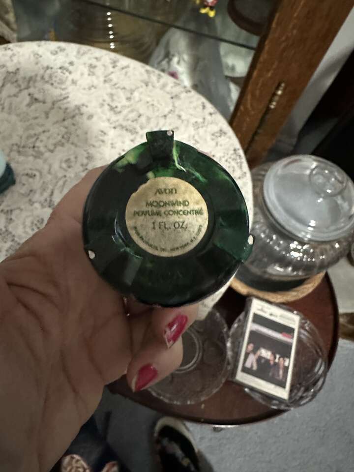 VenmoA cute, milk glass, egg from the AVON Oriental Egg collection. This one still contains the Moonwind cologne. It sits on a jade colored plastic stand which is the lid. Measures 2 3/4 inches tall and about 1 1/2 inches in diameter No chips or cracks.