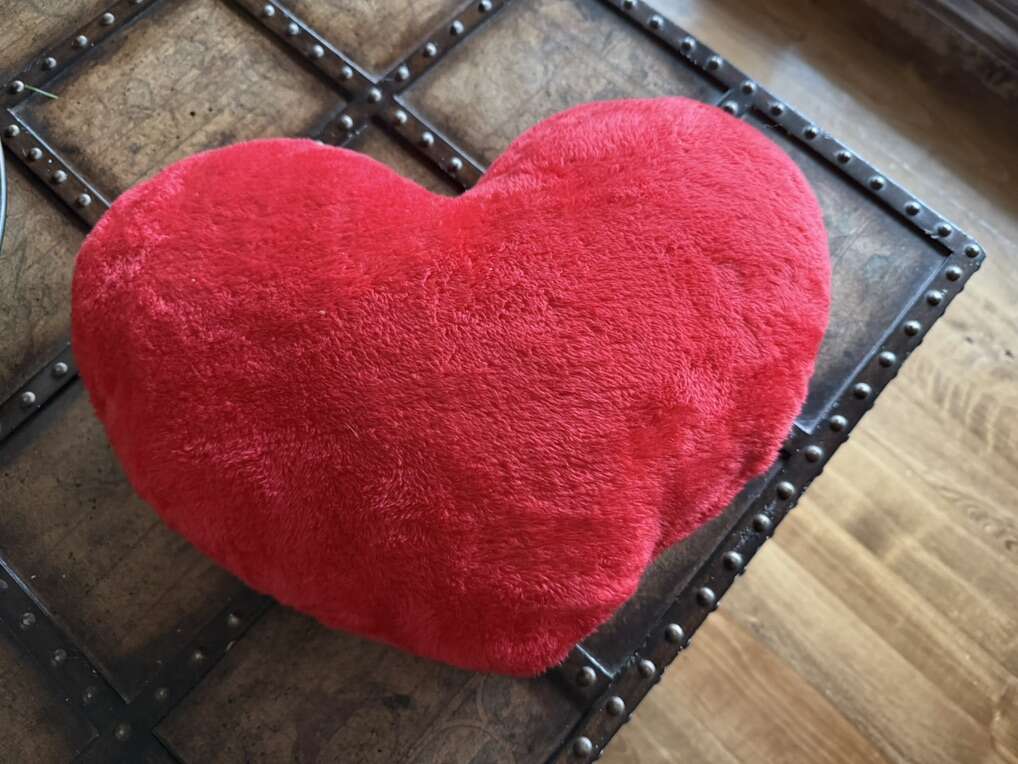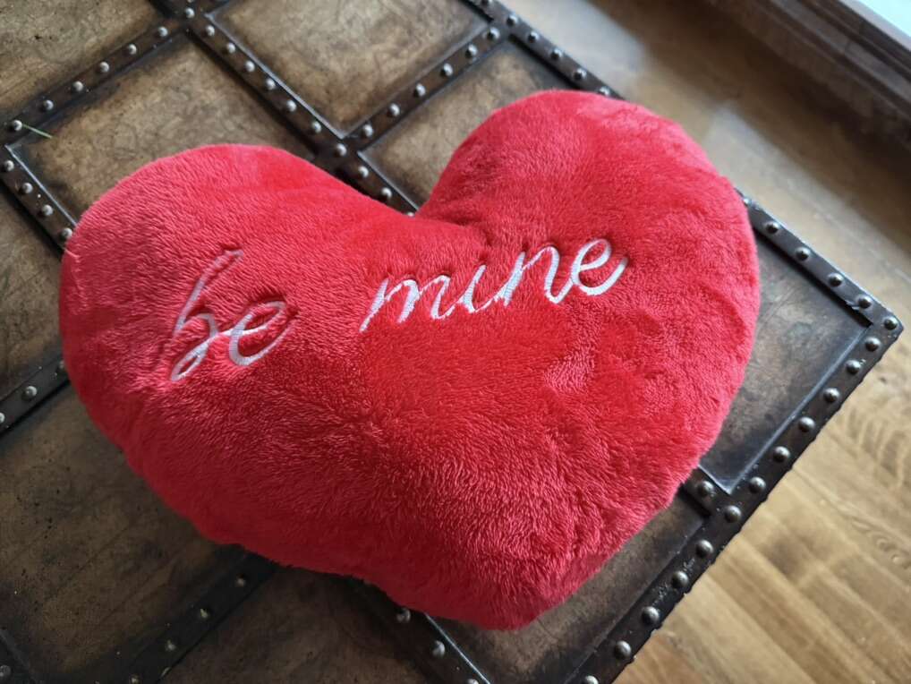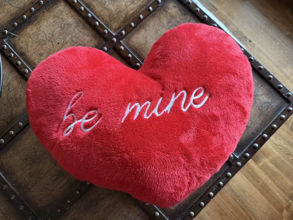 Pillow “be mine’ valentine heart pillow 17” long by 13” red