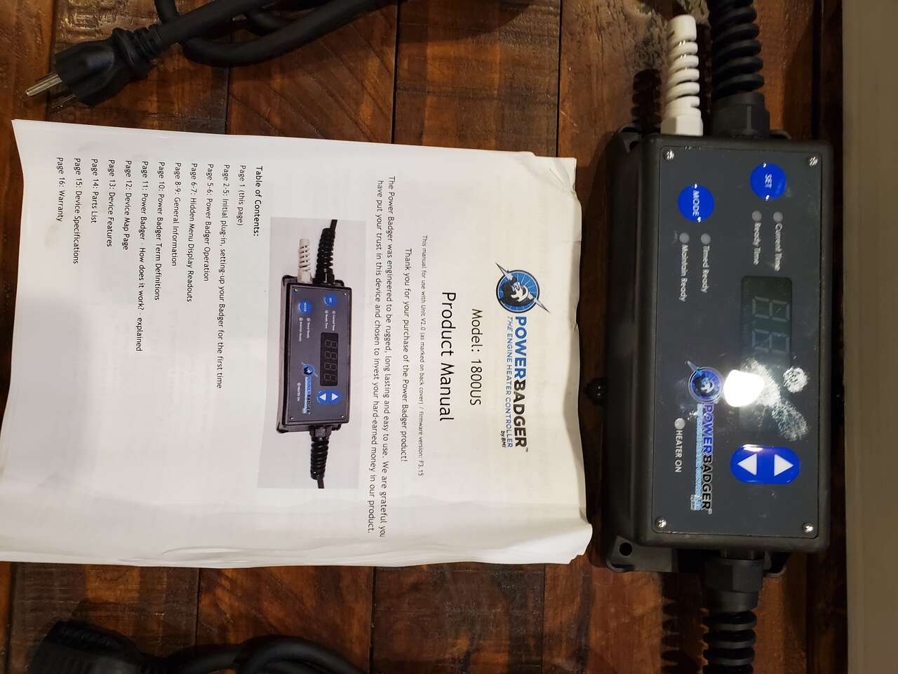 Power Badger engine block heater controller. Controls what time and outside temp. your plug-in block heater turns on. New in the box. New cost $150, this one $35.00, 435-279-3132