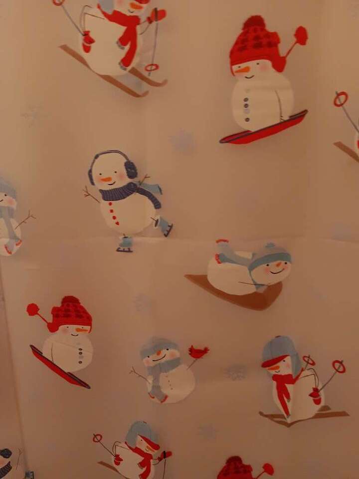 VenmoStandard size, Plastic Cute Snowman Shower Curtain, no liner needed. Holes for hooks are reinforced. The background is opaque (I have a white liner behind it). Be creative and use for a table cloth. Easy to wipe clean with the plastic material, or throw in the washer with warm water and a couple of towels.