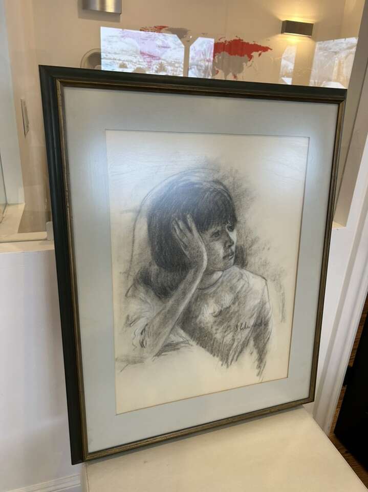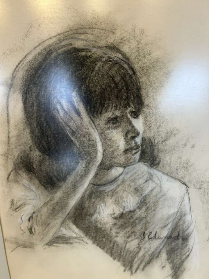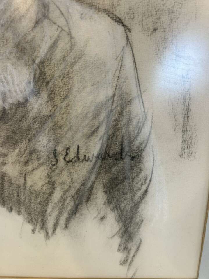 ZelleThis original charcoal drawing by artist Steve Edwards showcases his talent for contemporary art, expressionism, and realism. The portrait of a woman is one of a kind and handcrafted, with intricate details that make it a unique piece of art. The drawing is matted and framed, measuring 36 inches in height, 27 inches in length, and 2 inches in width.