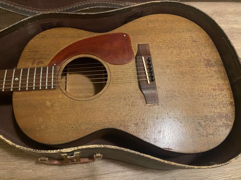 This 1967 Gibson LG-0 is amazing. It’s all original except for the bridge. The tuners are period correct replacements that I took from another late 60s Gibson LG-0. This guitar plays flawlessly with low action. It sounds bright and punchy but also has a full and satisfying frequency response. Chipboard case included which may be the original case.