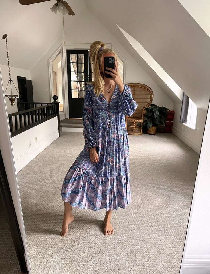 VenmoBoho Purple Long Sleeve Midi Dress Size Small Worn once Can be worn flowy or styled with a belt Just downsizing my wardrobe Cash or Venmo. Will hold with Venmo payment.