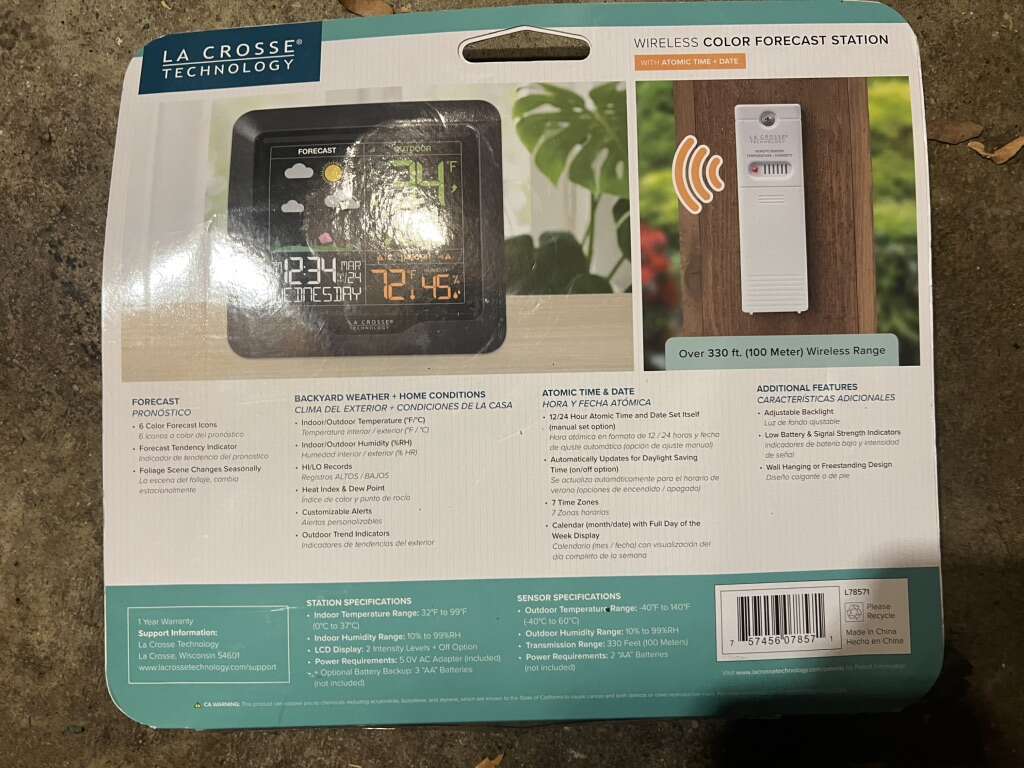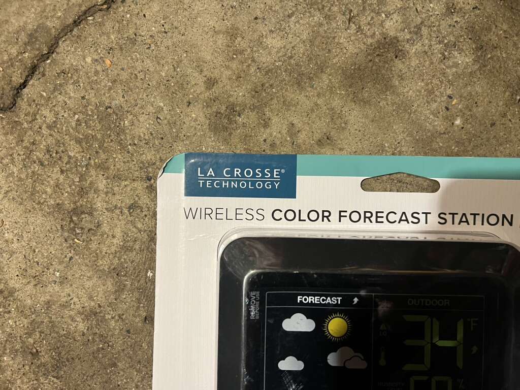 ApplePayNew La Crosse Technology Wireless Color Forecast Station with automic time and date over 330 feet wireless remote sensor temp/humidity Forecast icons Backyard weather Home conditions High/low alerts