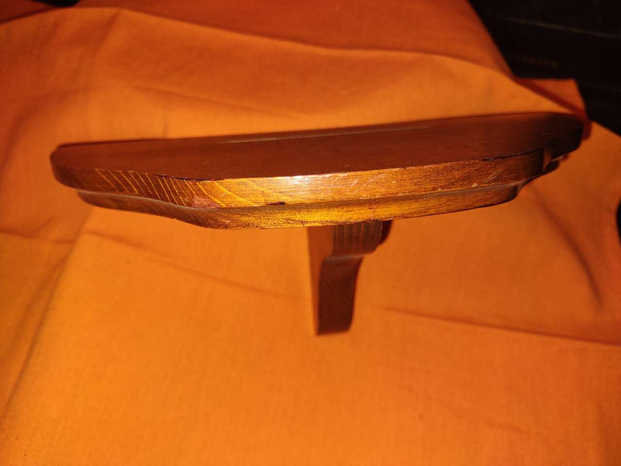 VenmoVINTAGE HALF-CIRCLE WOODEN CUP AND SAUCER DISPLAY SHELF has perpendicular support beneath and slot on top of shelf for plate/saucer display. Has two metal back bracketts. 10" wide x 5" deep and 5" tall. Currently $24 online. ONLY $10. Cash/Venmo. In Sandy 801-201-5350