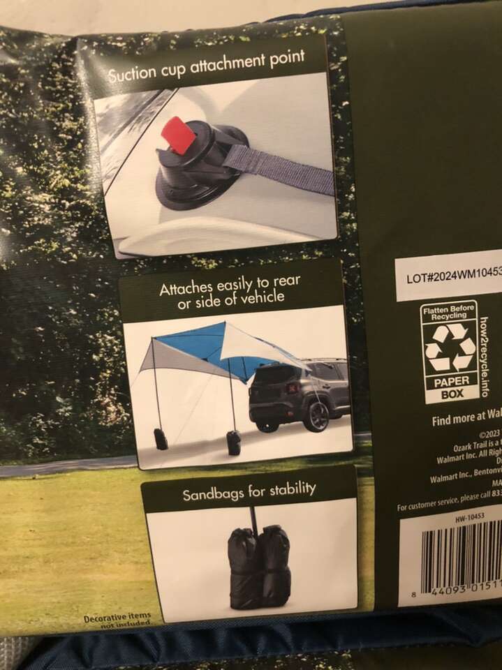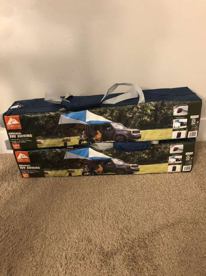 VenmoBrand new never opened or used. Includes 2 steel poles, 4 guy lines, 4 stakes, and 2 sandbags. Easily attaches to rear or side of vehicle with suction cup attachment. Cash or Venmo and pick up only. FCFS