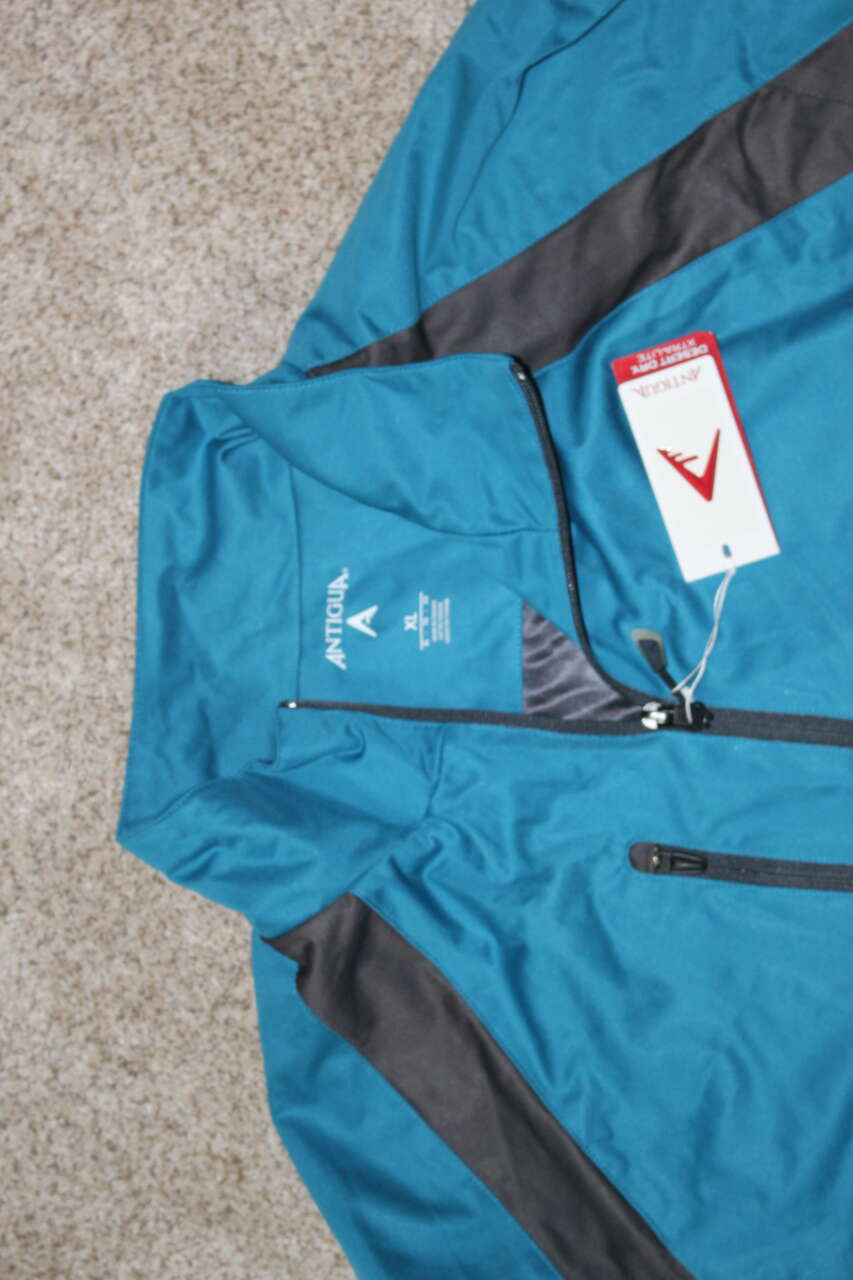 Men's Antigua Desert Dry Extralite 1/4 zip pullover jacket, size XL Brand new with tags. Wolf Creek golf course logo on left sleeve. 1 breast pocket and velcro wrist adjusters. Offers considered.