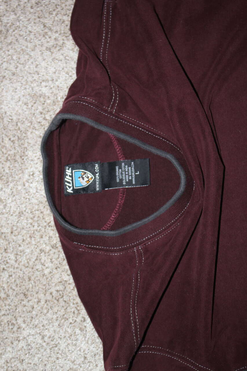 Kuhl men's heavyweight two-tone shirt, size L. Attractive maroon and grey colors. Excellent condition. Offers considered.