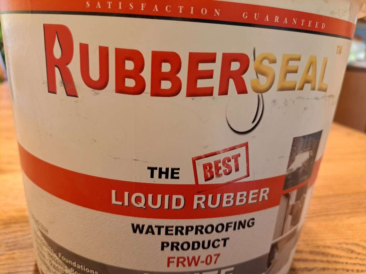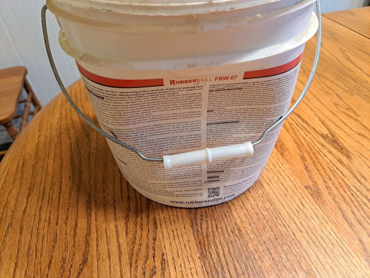 2 Gallon bucket White liquitd rubber waterproofing. We bought it and never used it. It's been sitting a couple of years. Never opened.