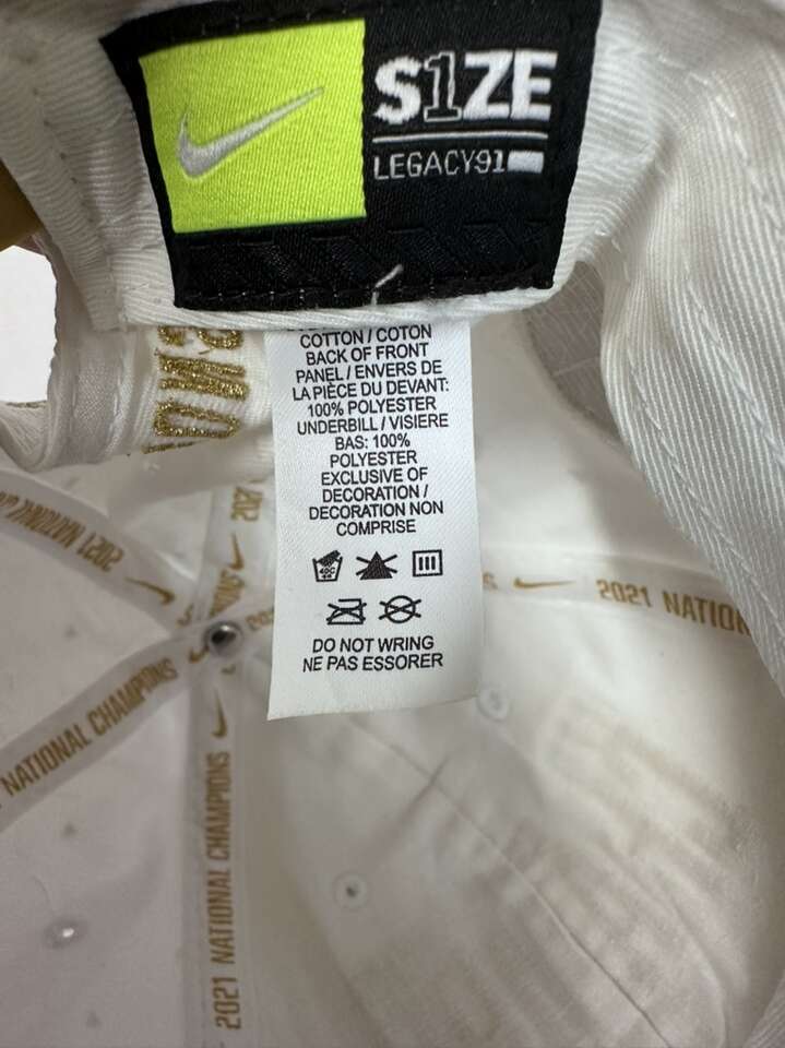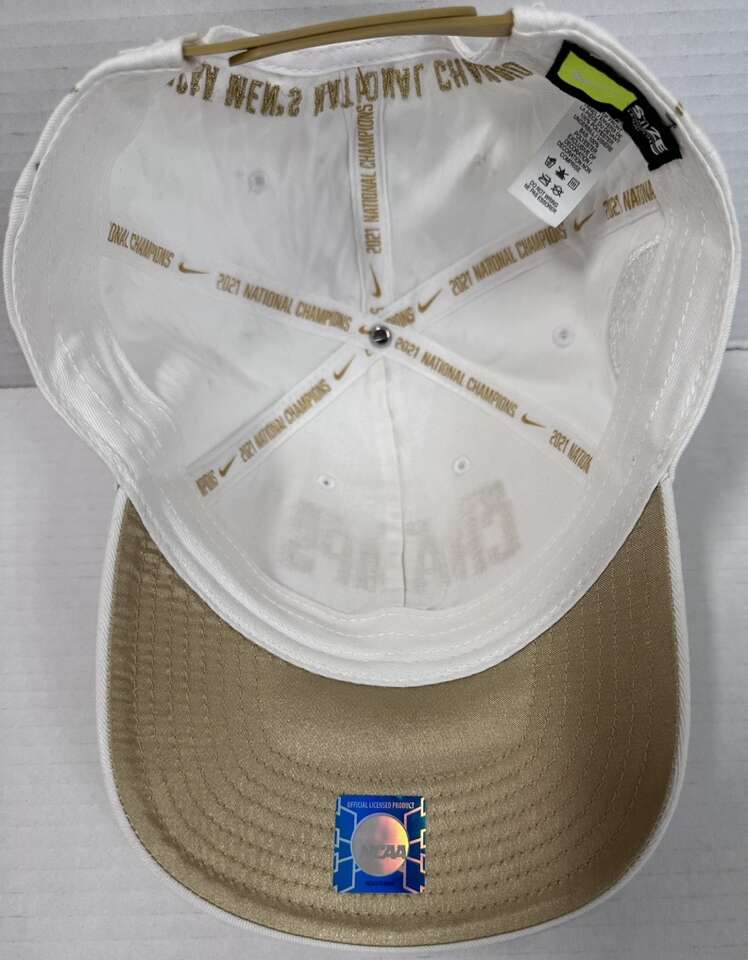 The 2021 Nike Baylor Bears NCAA Champs Snapback is a white snapback cap featuring the Baylor Bears team logo. Designed by Nike, this unisex adult cap is specifically made to commemorate Baylor's championship victory in the NCAA tournament. This officially licensed product is an ideal accessory for fans looking to show their support for the Baylor Bears basketball team in style.