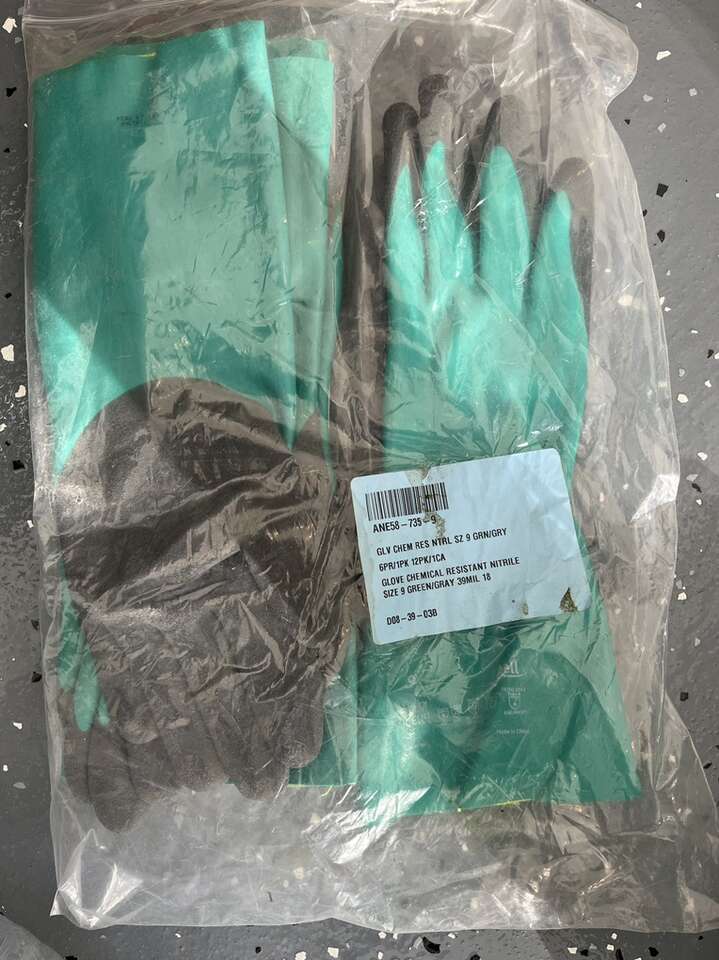 Size 9 green/gray nitrile chemical resistant gloves