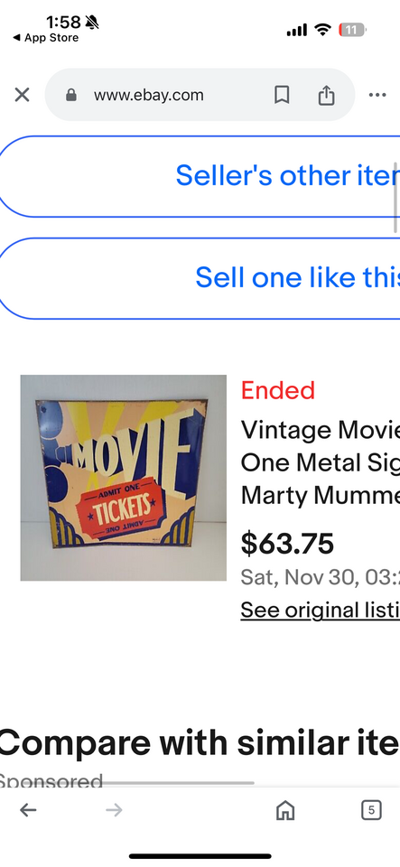 VenmoVintage Movie Time Metal Sign made in USA Approx 17" x 23" Perfect for your movie room