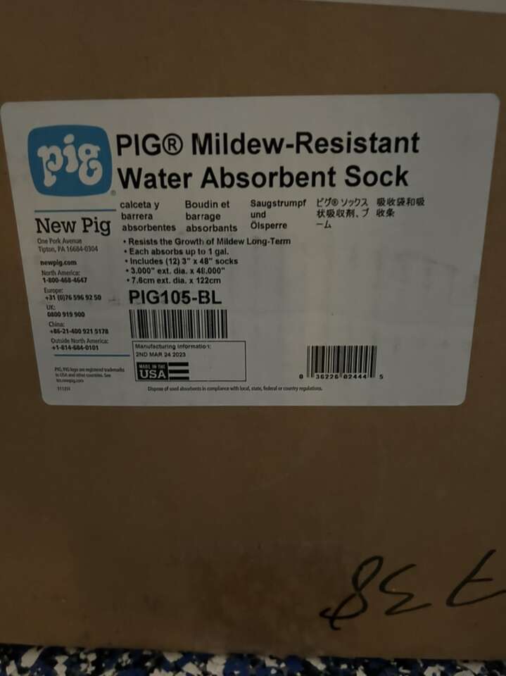 New Pig Mildew-Resistant Absorbent Sock | Water Absorbing Snake | 3 x 48 | 1-Gal Absorbency | Pack of 12 | PIG105-BL