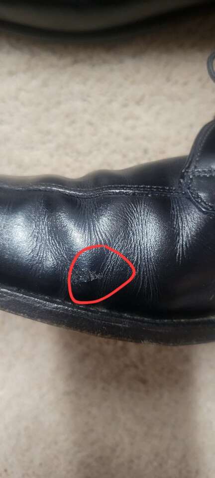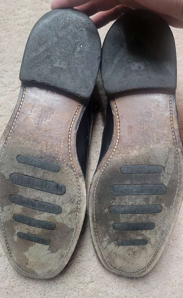 One small nick (pictured). these are vert nice shoes that could be resoled one day id you wanted.
