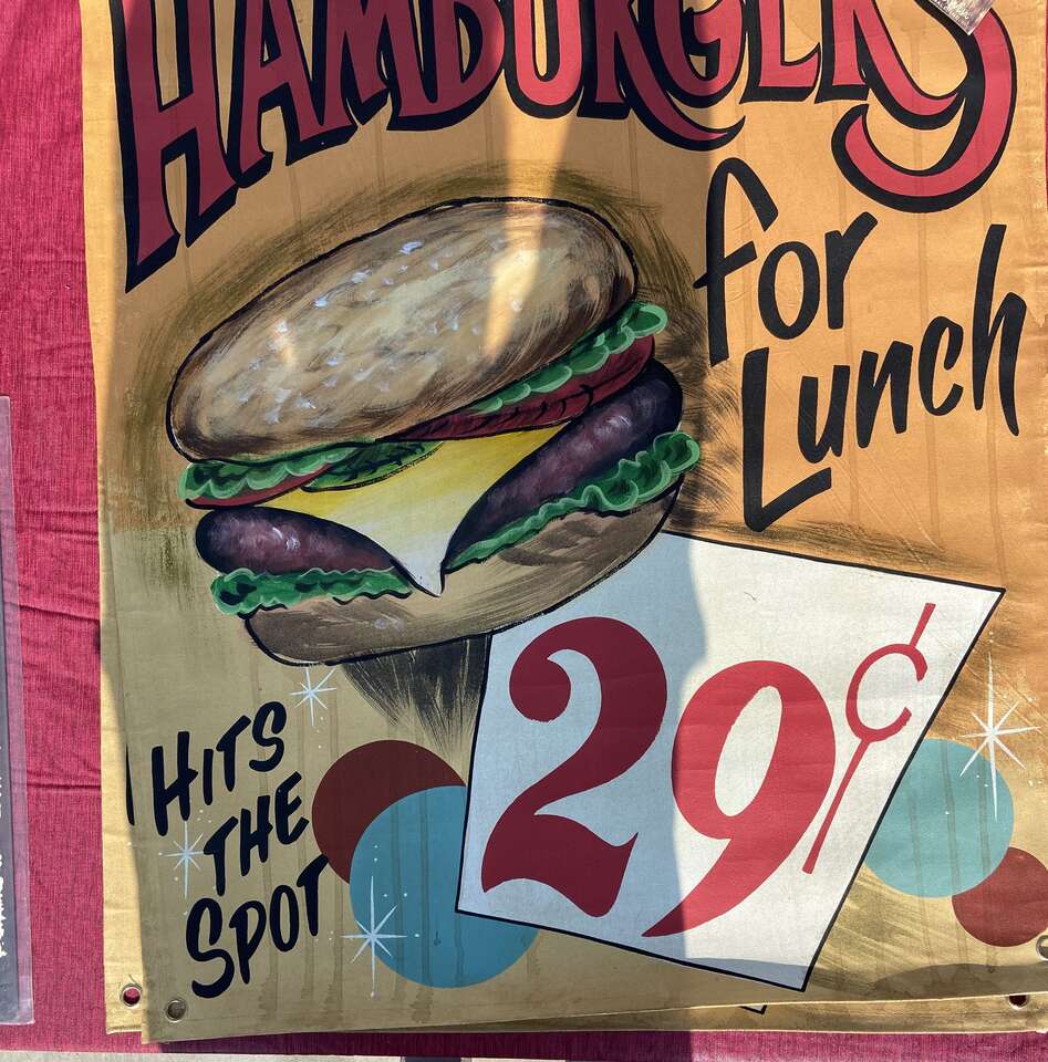 VenmoIconic Hamburger Advertisement Sign paint on canvas. gromets on all 4 corners for hanging. Aprox. 3Ft x 2 ft.