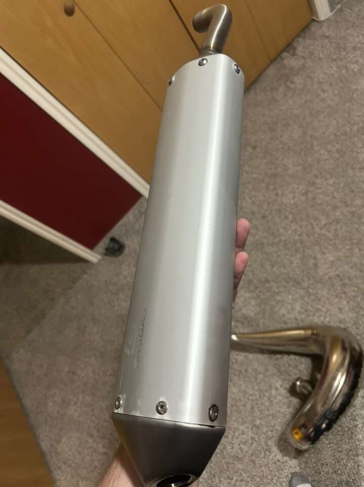 VenmoThis came off of my 23 Gasgas Ec300 I just bought with only 13 hours on the bike. I Installed a different set up so don’t need anymore. No dents, in like new shape. Will fit years 19-23 Ktm, Husqvarna, and Gasgas 250 or 300cc bikes. Expansion chamber part# 55705007000. Silencer part# A54005081000. It’s over $1000 on www.rmatvmc.com website in Oem parts. Edit pipe sold, $100 obo for silencer