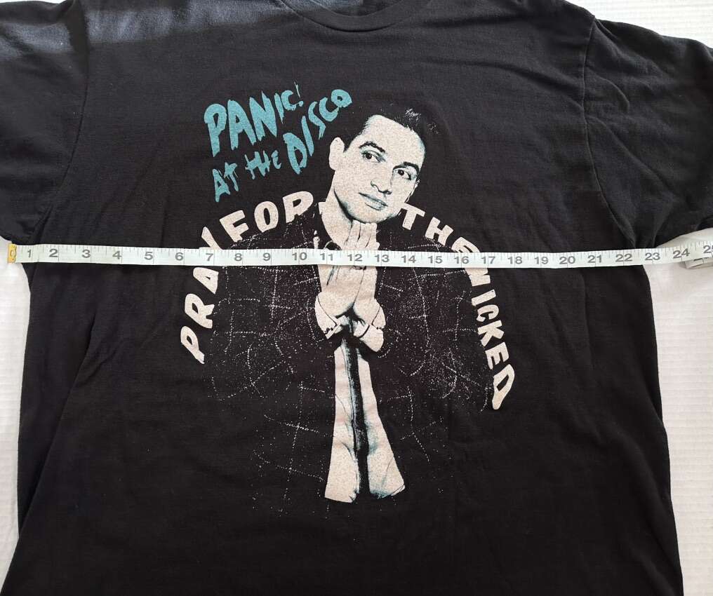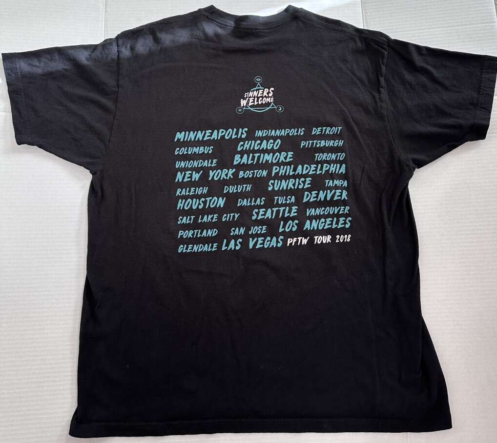 This is a size XL black T-shirt from the 2018 Pray For The Wicked Tour. The shirt is made of cotton, designed for men with a regular fit and short sleeves. Perfect for fans of the band or music enthusiasts looking for a stylish and comfortable addition to their wardrobe.
