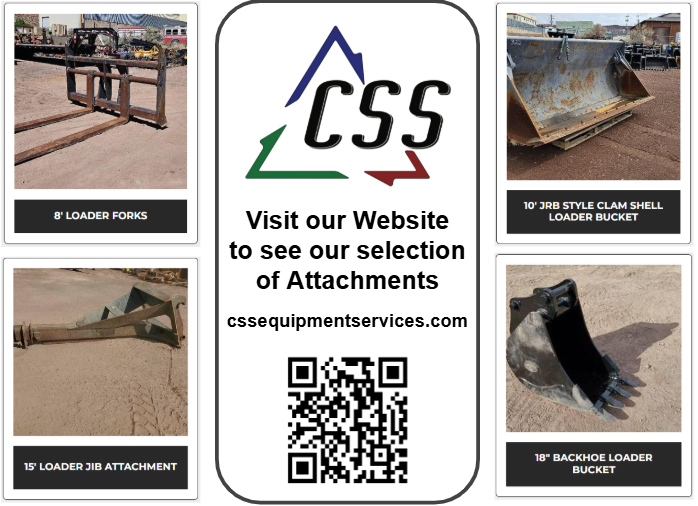 Explore our wide selection of equipment attachments on our website cssequipmentservices.com. We have new and used options available.