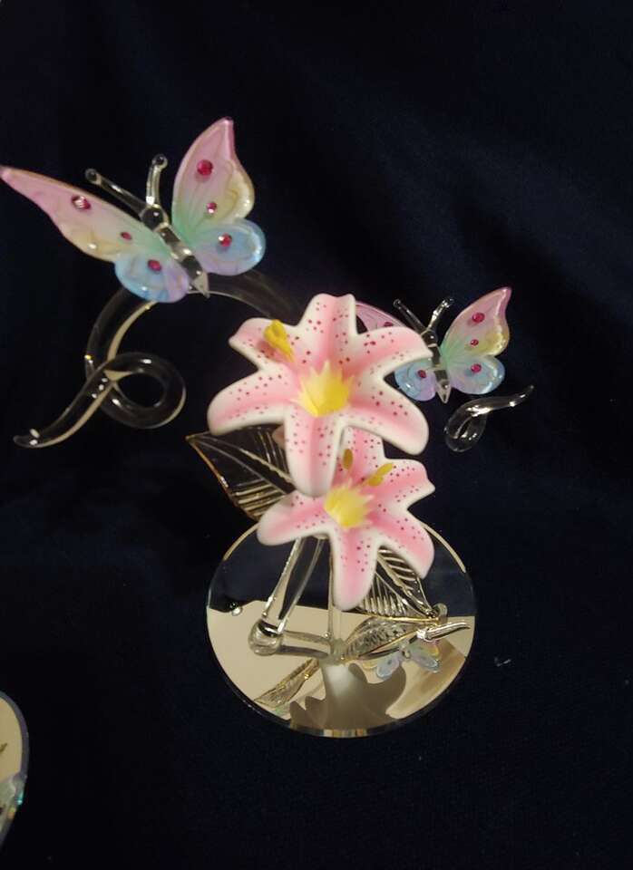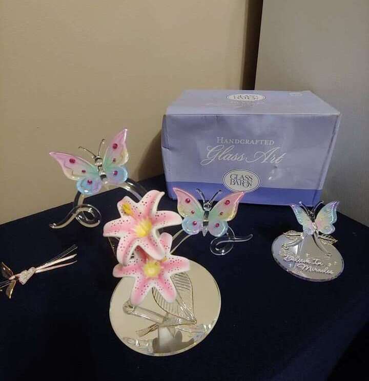 "Believe in Miracles" Single Handcrafted Glass Butterfly with Gemstones and Air-Brushed Accents for $10 & Butterflies & Lilies Large Figurine for $35 or buy both for $40