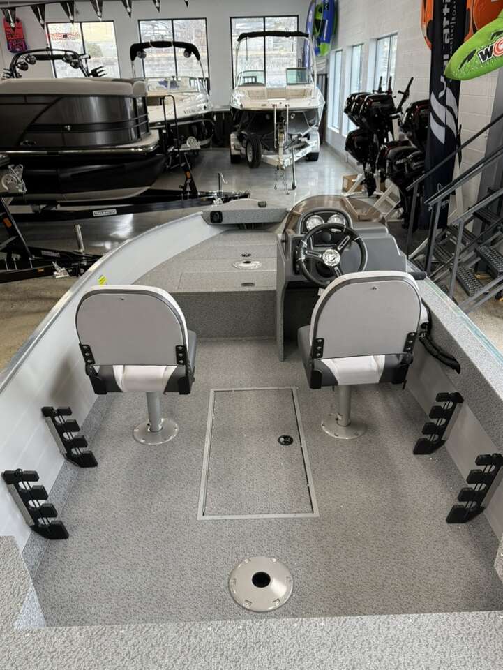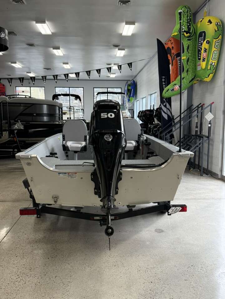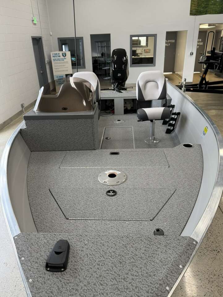50hp outboard Portable fuel tank 16’2” length 81” beam Dry weight 845 lbs Person capacity 5/670lbs Inside depth 25” 2 seats 26gallon livewell 10 rod storage spaces 6 year/ lifetime warranty