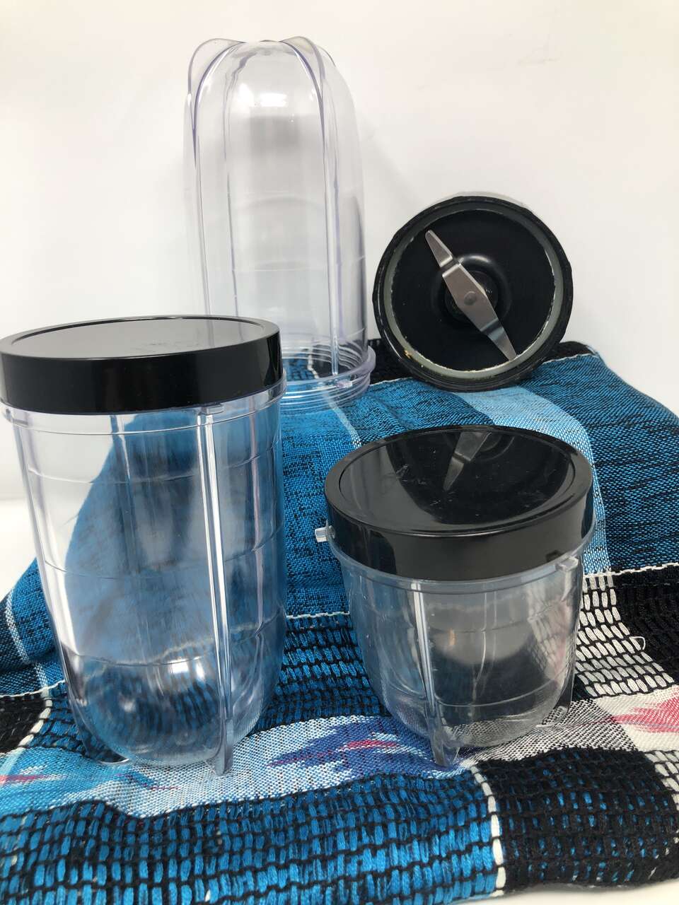 VenmoMagic Bullet replacement pieces. We have 2 tall blender cups, 1 small blender cup, 2 keep fresh lids, and 1 flat blade. The lids and the blade can fit all 3 cups.