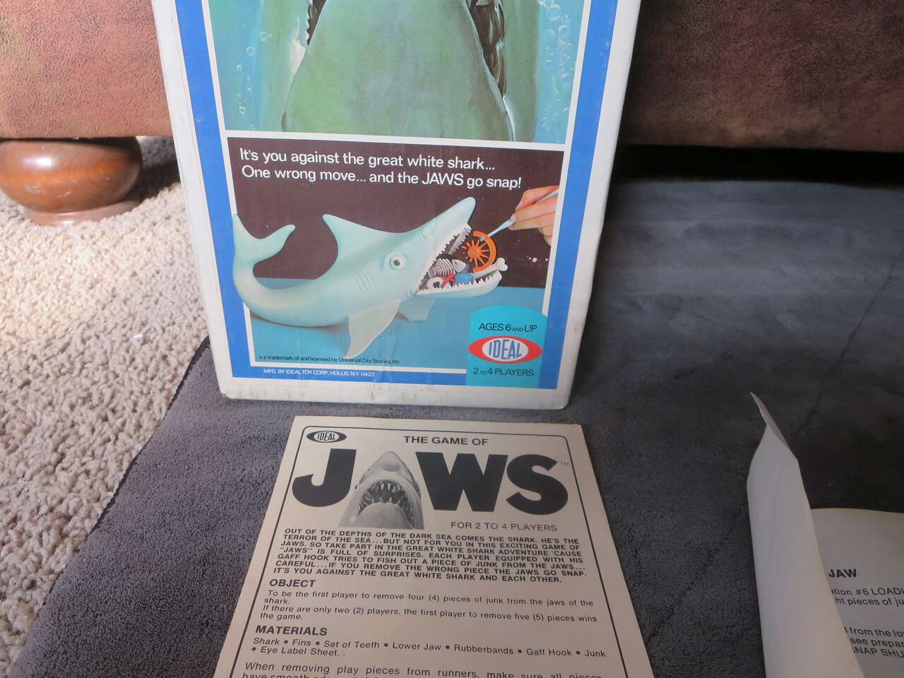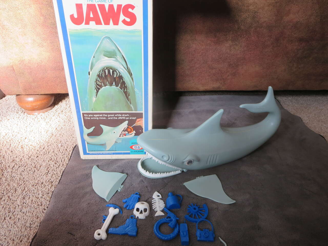 I have a. Vintage IDEAL 1975 The Game of Jaws 99% Complete w/ All 13 Pieces & Clean Box! Mint condition. For sale call or text only thanks for looking D.