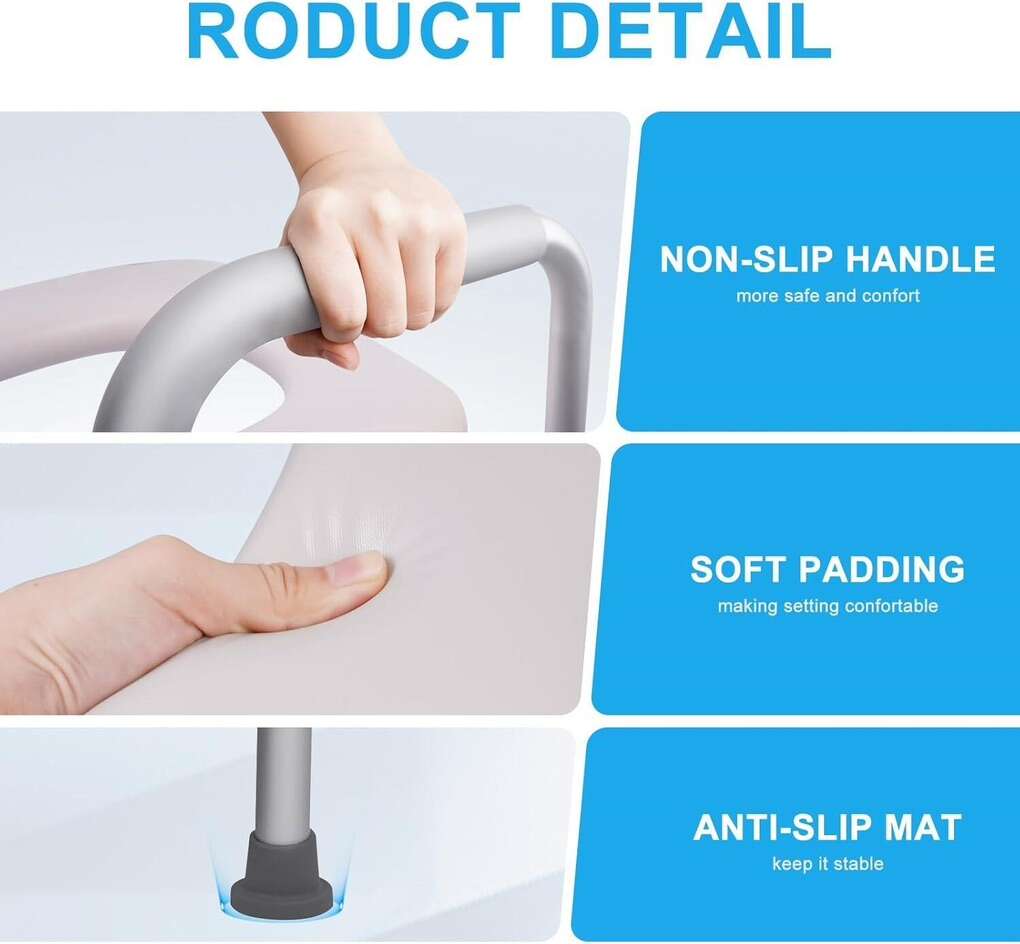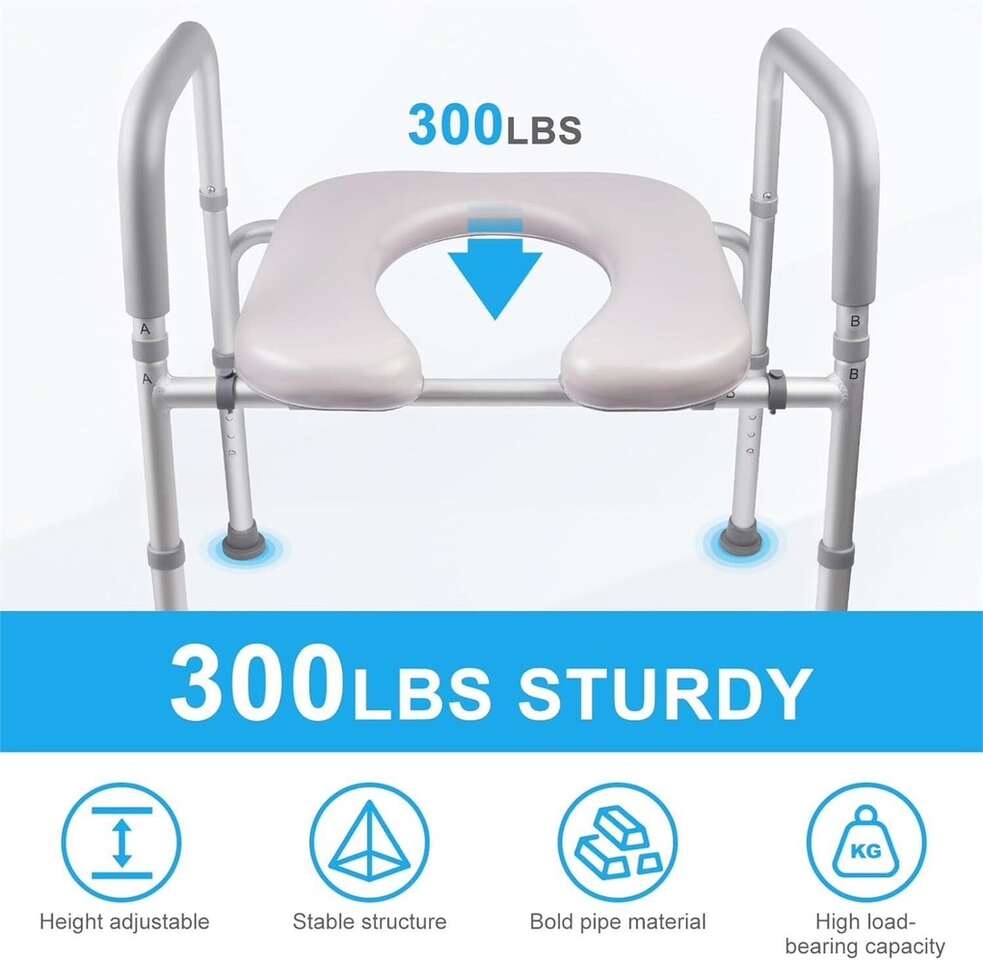 Adjustable Height: The raised toilet seat with handle features a customizable height option that ensures a comfortable and personalized fit for users of different heights and needs.