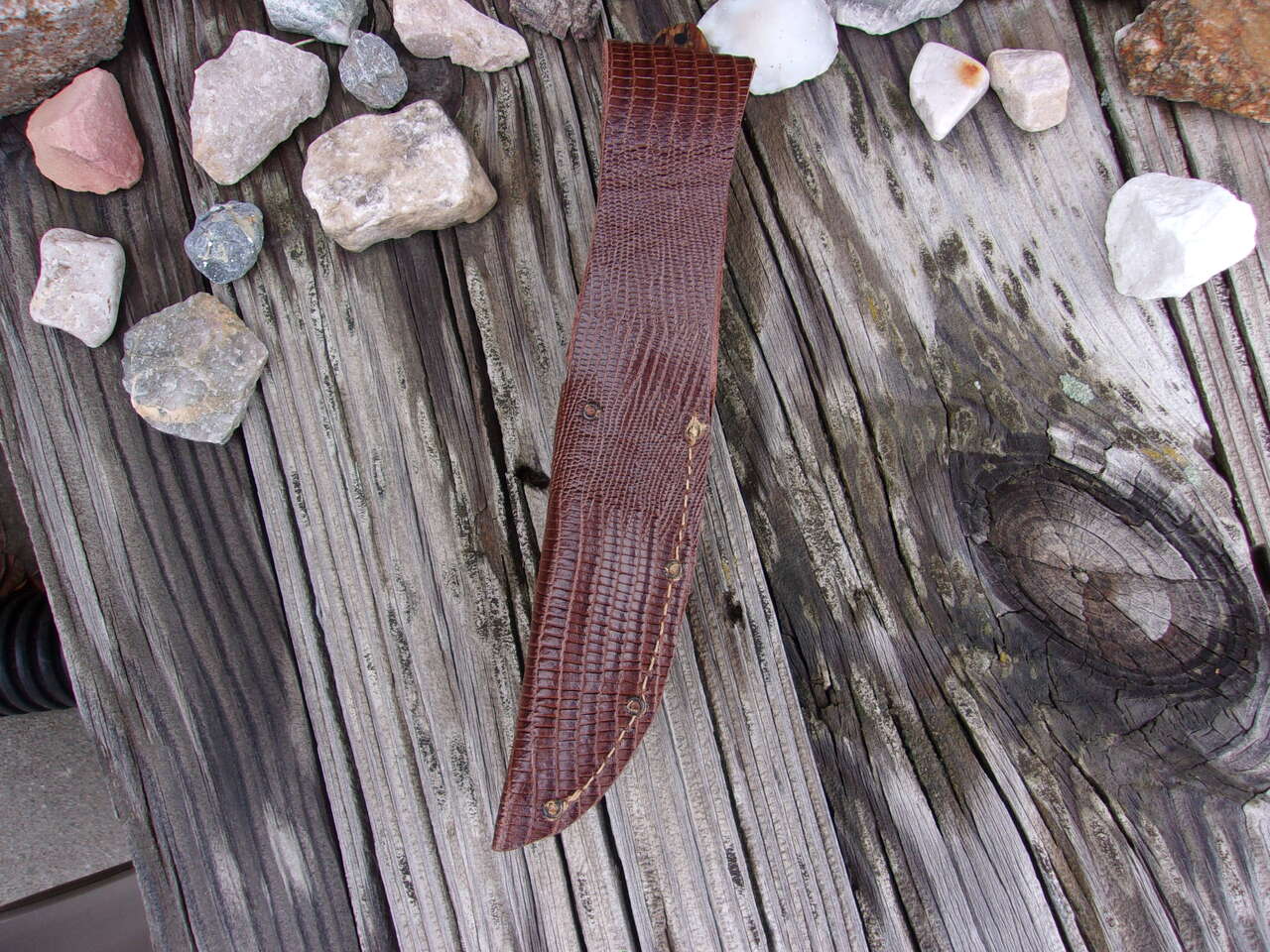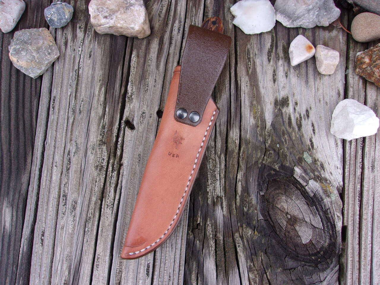 Also included is an LF Custom Leather Secure Fit Pouch Sheath that is “hand cut” & “hand sewn” using a saddle stitch for increased strength and durability. The leather is 8-10 oz. Full Grain Leather that has a brown finish and treated with Sno-Seal for longevity and protection.