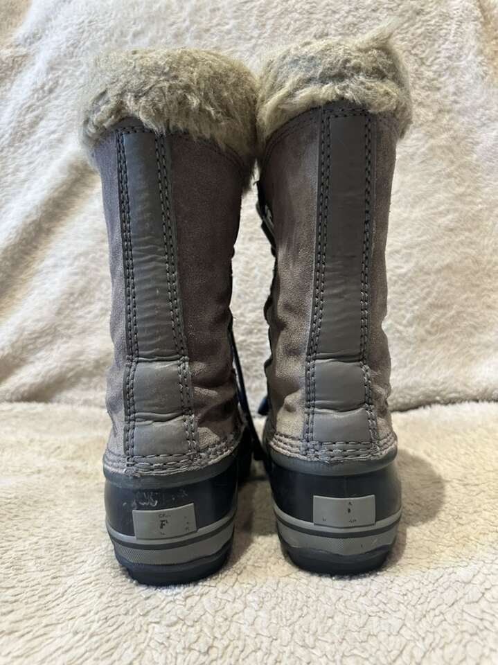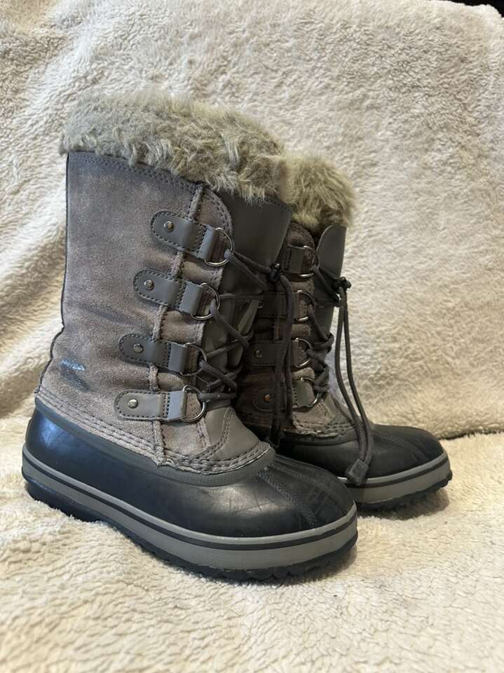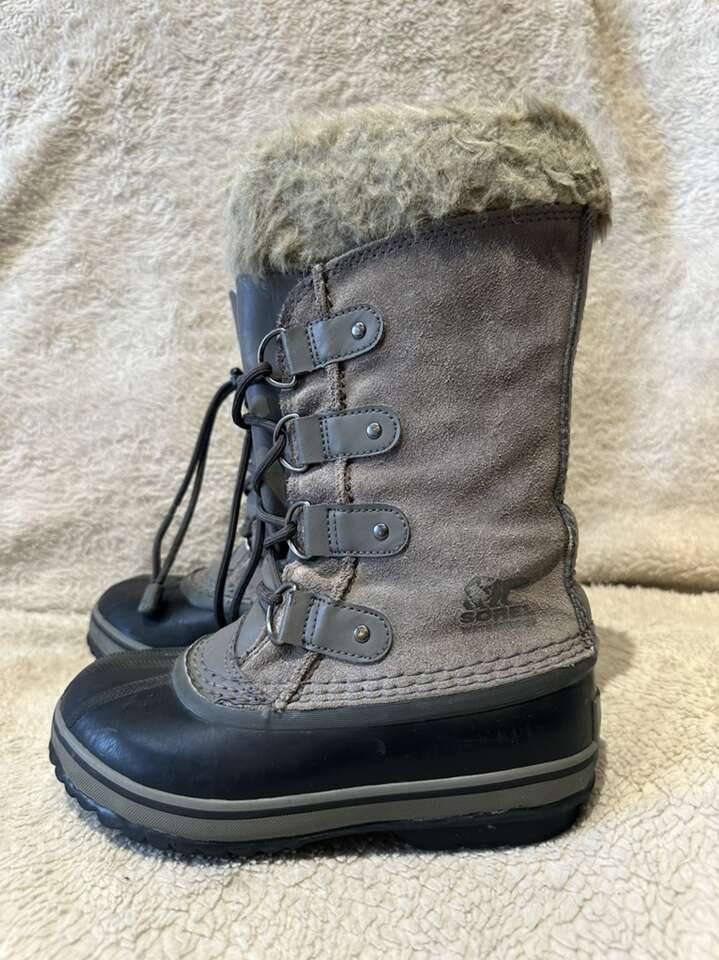 Sorel youth size 2 gray/black waterproof winter boots with fur trim. These are in good condition, see photos for details. I take cash or Venmo, but cash is preferred. These are similar to the Joan of Ark style for women. Text his best. 801-201-4446. Check out my other ads for additional sizes and styles.