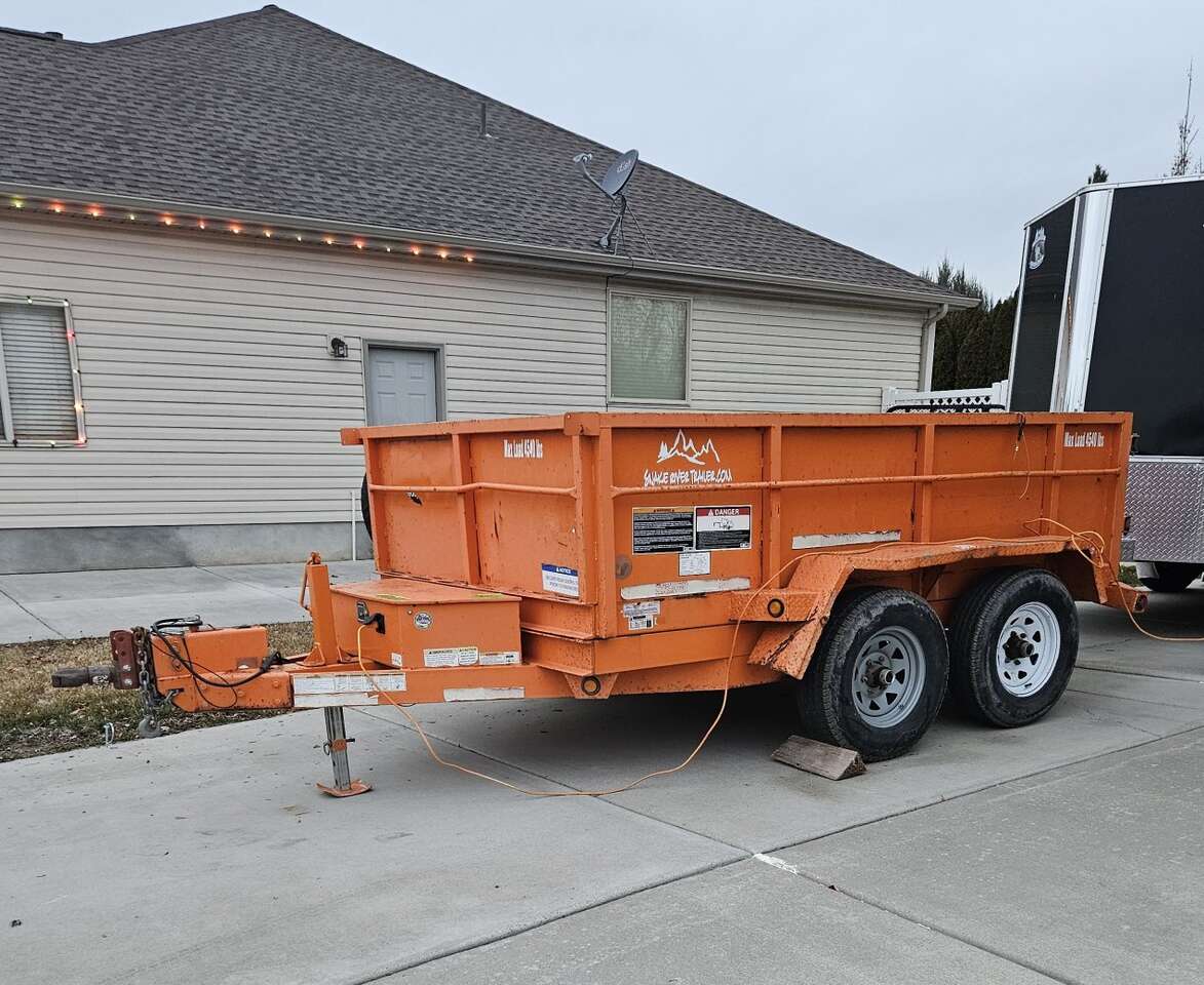 2017 Snake River 6x10 Dump Trailer. Holds 4500 lbs / 2.5 tons of materials. This is a former Home Depot rental. I bought this for yard projects and dont need anymore. New hydraulic lines, fresh hyd fluid, newer spare tire. Everything work great, pulls straight. Bulldog coupler with breakaway brakes. Trickle charger with 120v plug-in. This is a Heavy Duty commercial grade build. The fenders are dented from being a rental, but still solid. Doors open smooth and straight. Axles are 3.5k lbs. Fresh tires and a new spare mounted on side. Possible trade for equal value tilt deck car hauler or aluminum car hauler.