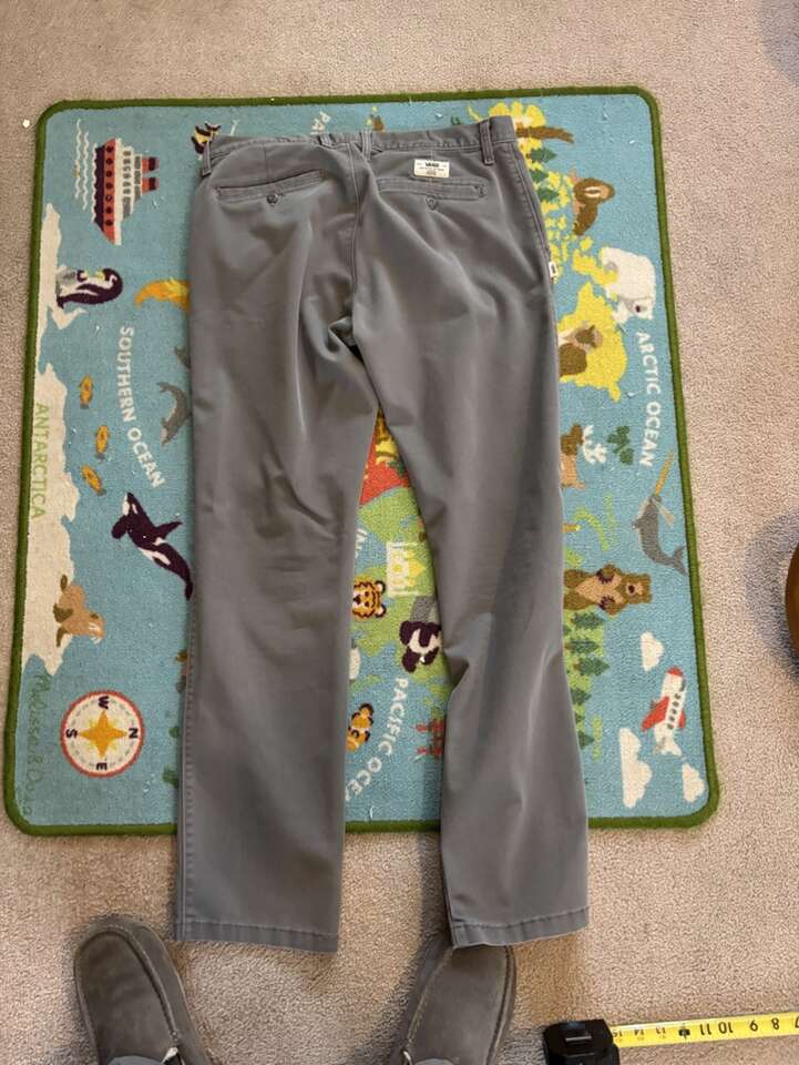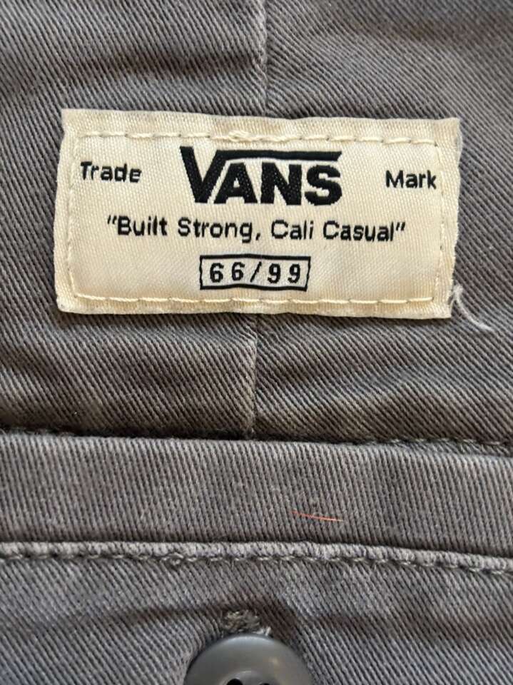 Here’s pair of vans straight flat front pants. Heavy duty material all over.