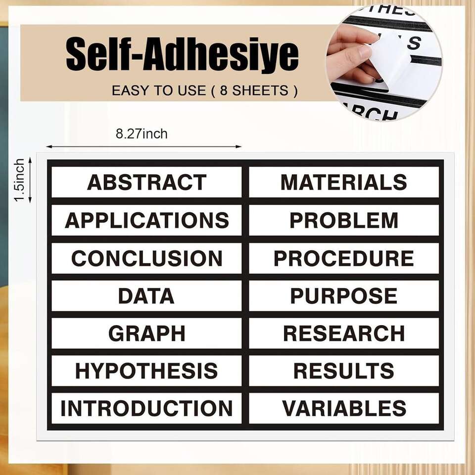 Adequate to Meet Your Needs: you will receive 8 pieces of tri fold presentation boards and 8 sheets of self adhesive presentation science subtitles in different contents each sheet has 14 pieces; The quantity is sufficient for you to apply and replace and can easily meet your daily use and other requirements.