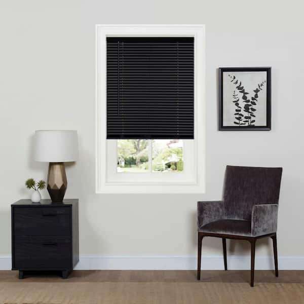 GII Deluxe Sundown Black Cordless Room Darkening Vinyl Mini Blind with 1 in. Slats 35 in. W x 64 in. L New 35” x 64” Black Window Blinds