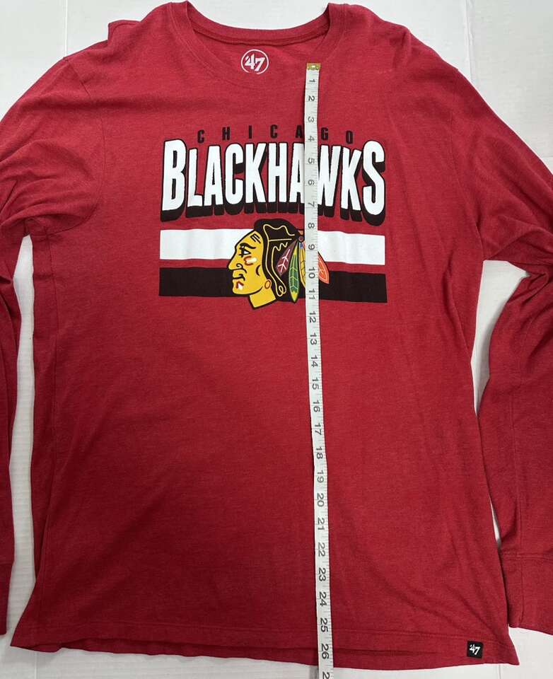 VenmoPickup in Clearfield. Cash or Venmo. The product is a men's large shirt featuring the 1947 Chicago Blackhawks logo, officially licensed by the National Hockey League (NHL). The red shirt is designed for fans of the Chicago Blackhawks team to wear during the regular season games. Made for male fans, this NHL shirt is a great way to show support for the team and display team spirit while watching or attending games.