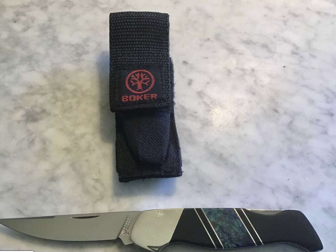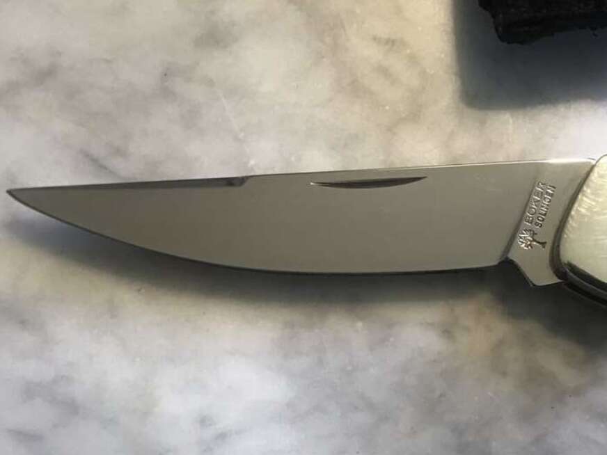 Beautiful stainless steel knife. Never used, like new. 1990s I believe it may have been custom-made. The handle is made by Santa Fe stone.