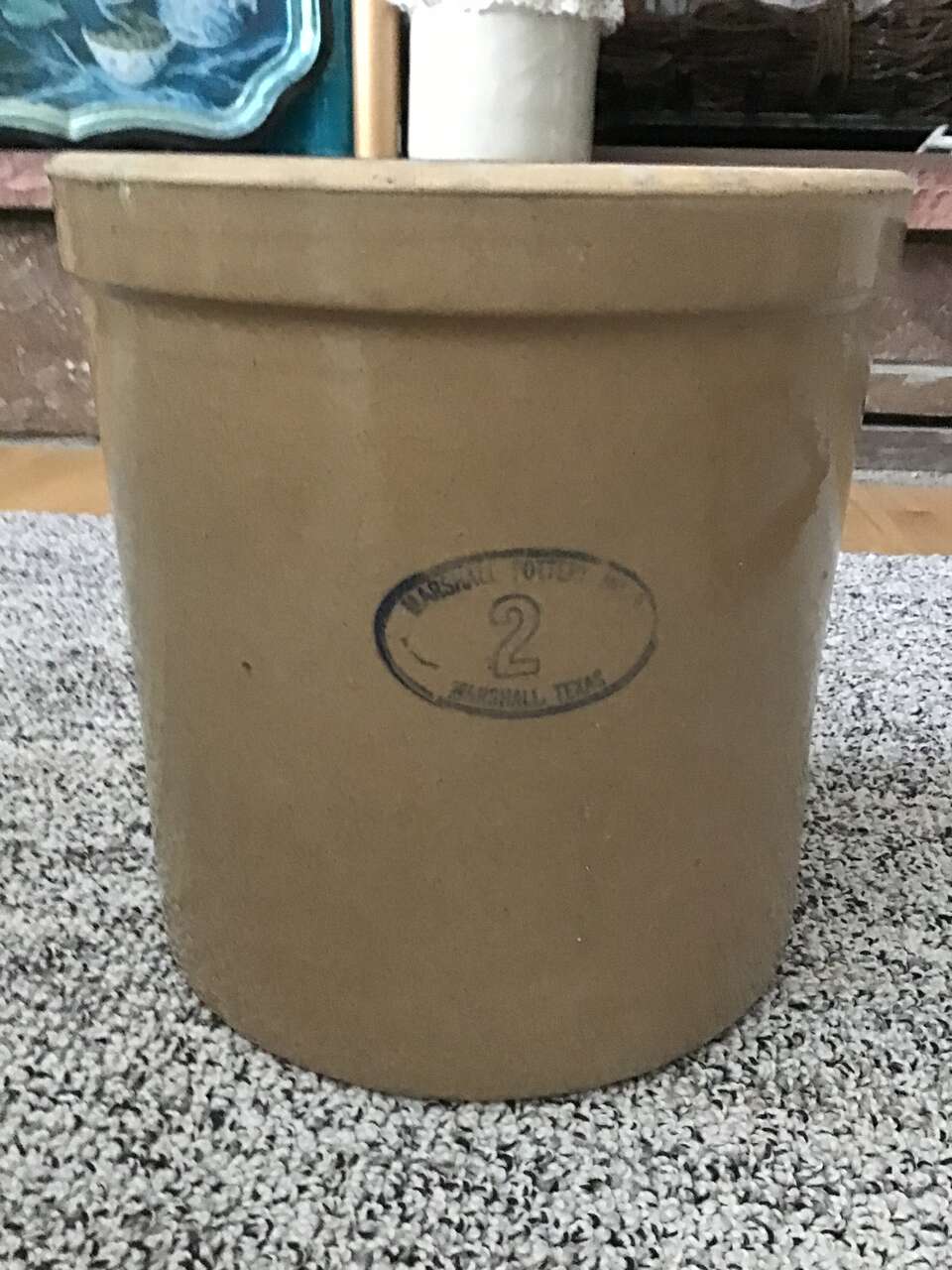VenmoAntique Marshall Pottery, 2 gal. Marshall, Texas. No chips or crack. Will consider reasonable offers. Please see more by seller for couple of other crocks. Downsizing my collection. (Lowered price from $150)
