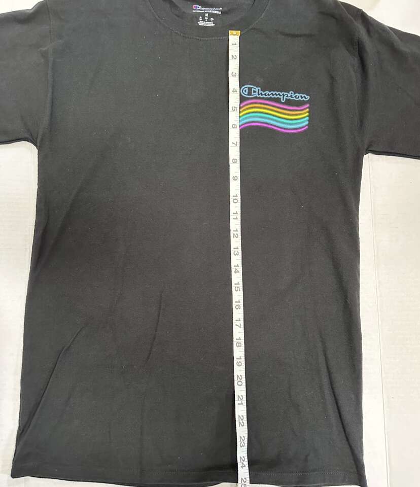 This Champion Equal V2 Men's T-Shirt in size Medium features a classic Crew Neck neckline and a solid black color with a logo accent. Made from a cotton/polyester blend fabric, this short sleeve shirt is designed for all seasons with easy care instructions for machine wash. The Champion brand shirt is part of the Champion product line and has a regular fit, making it a versatile and comfortable option for men looking for a stylish and casual top.