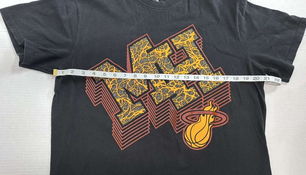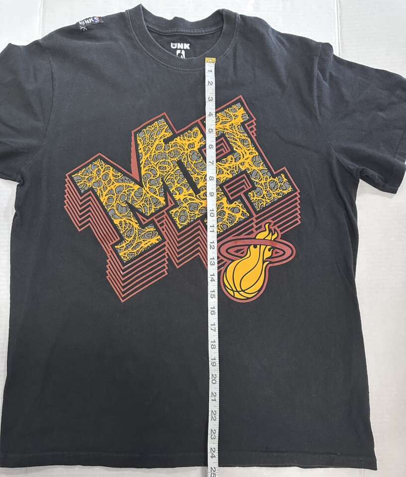 The Miami Heat T-Shirt is an officially licensed men's shirt in size medium, featuring the team's logo and colors. It is designed for fans of the Miami Heat basketball team in the NBA to show their support during the regular season. The shirt is black in color and suitable for any basketball fan looking to represent their favorite team in style.