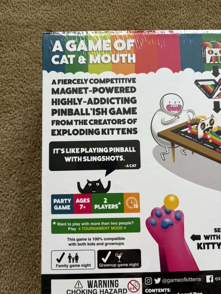 NEW (sealed in plastic) A Game of Cat & Mouth: A fiercely competitive magnet-powered pinball’ish game from the creators of Exploding Kittens. Ages 7+, 2 players. 2020. New, unopened condition. Text only. Cash or Venmo.