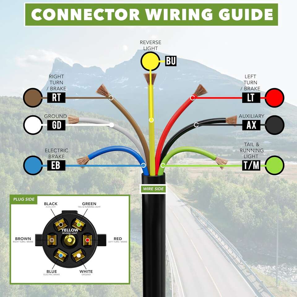 7-way connects tail, brake, reverse, turn signals, brakes and auxiliary power