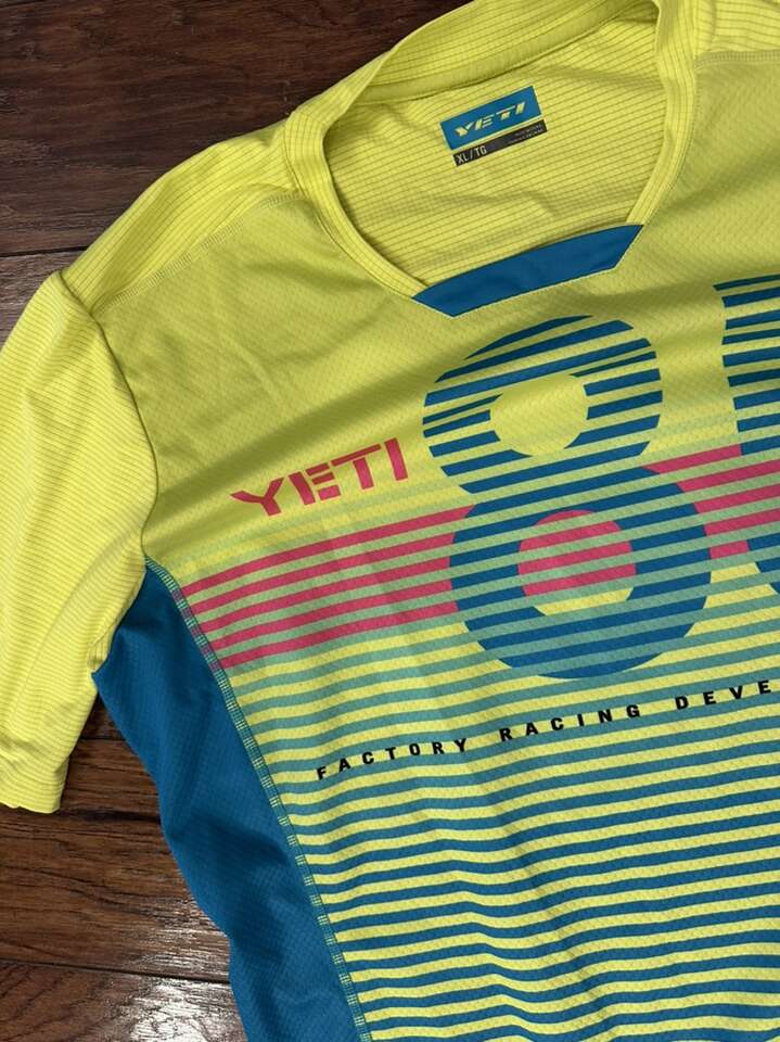 ApplePayShort sleeved. Yellow and turquoise. Yeti. Factory racing development. XL.