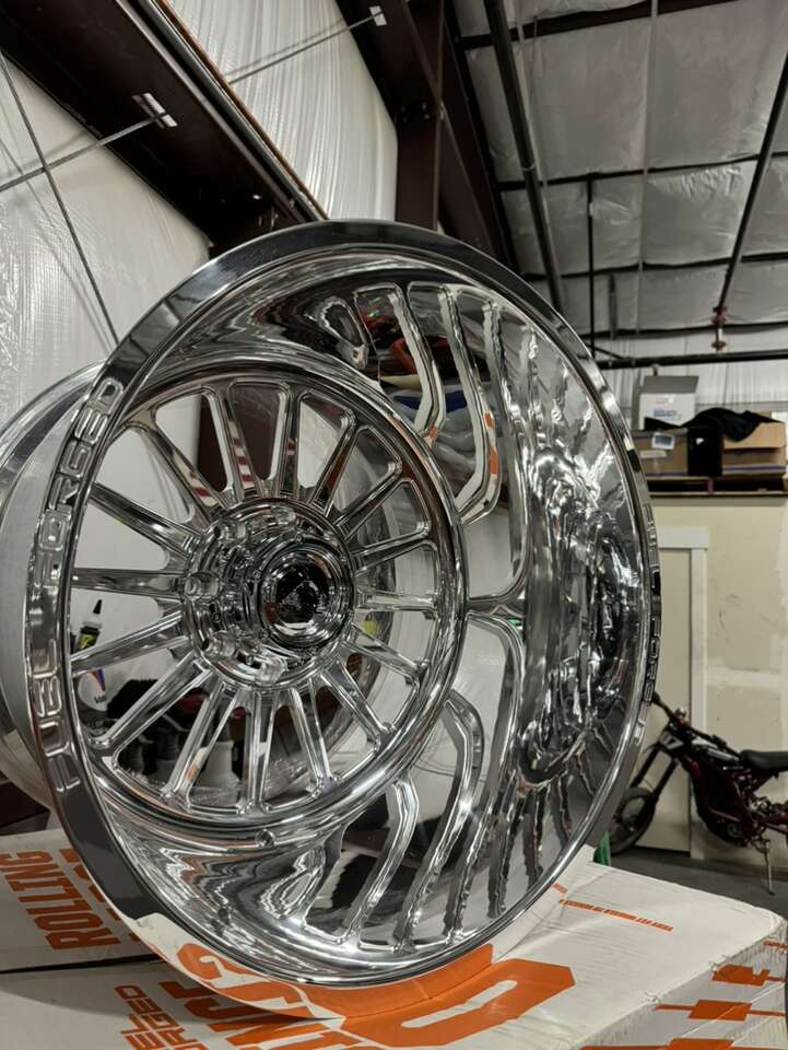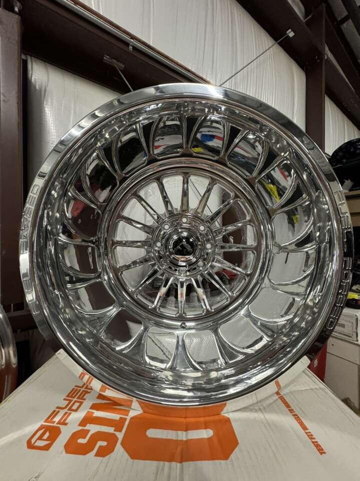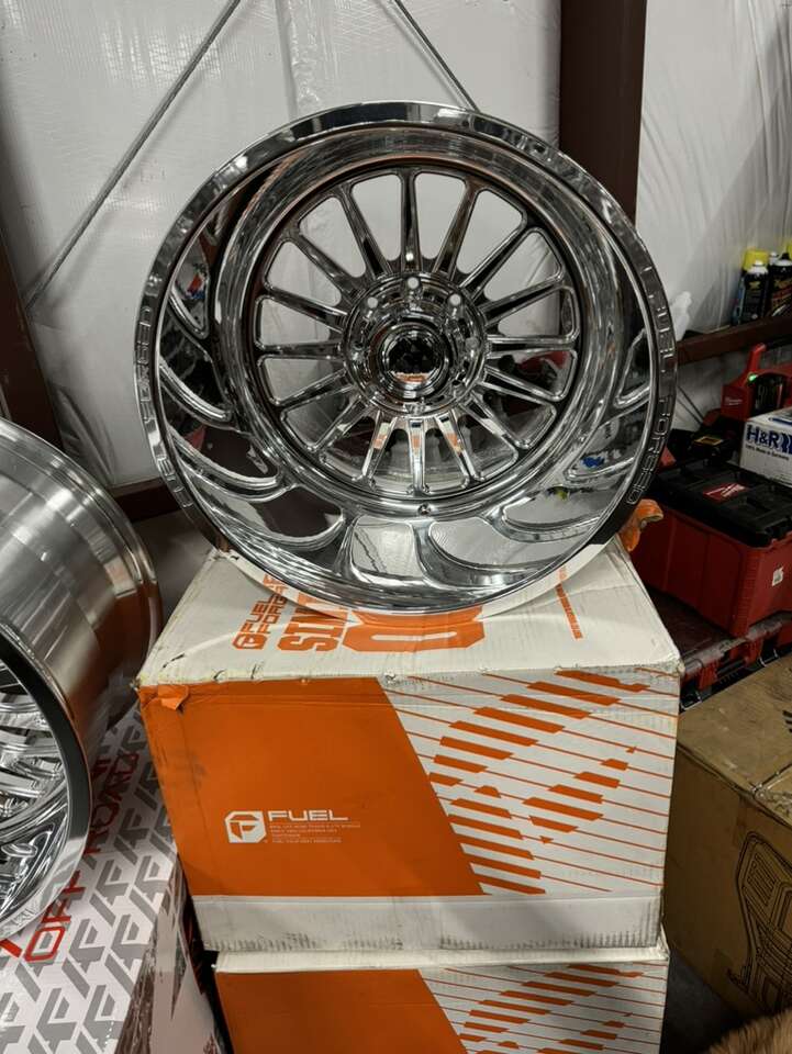 ZelleBRAND NEW IN THE BOX NEVER MOUNTED 22x16 fuel forged wheels. Billet forged wheels Polished mirror finish, -100 offset