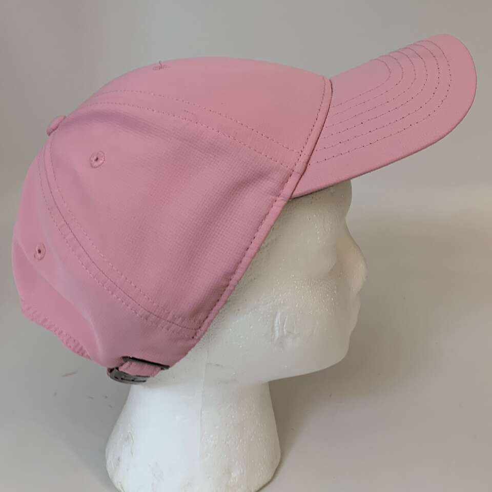 VenmoPearl nylon with UPF 50+ sun protection Black under-visor and Moisture wicking sweatband, Structured stiff buckram mid-profile, slide and tuck with metal clasp on back. Dark pink color. Message me if interested in purchasing