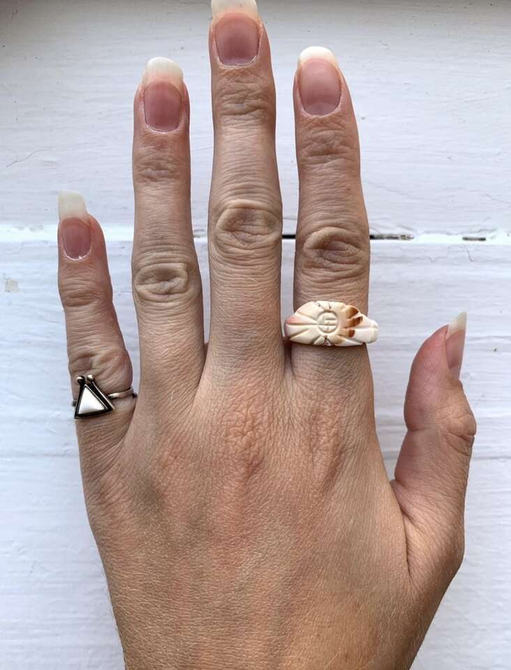 VenmoCarved Shell Ring Size 5.25 on my ring sizer Carved floral design Cash or Venmo. Will hold with Venmo payment.