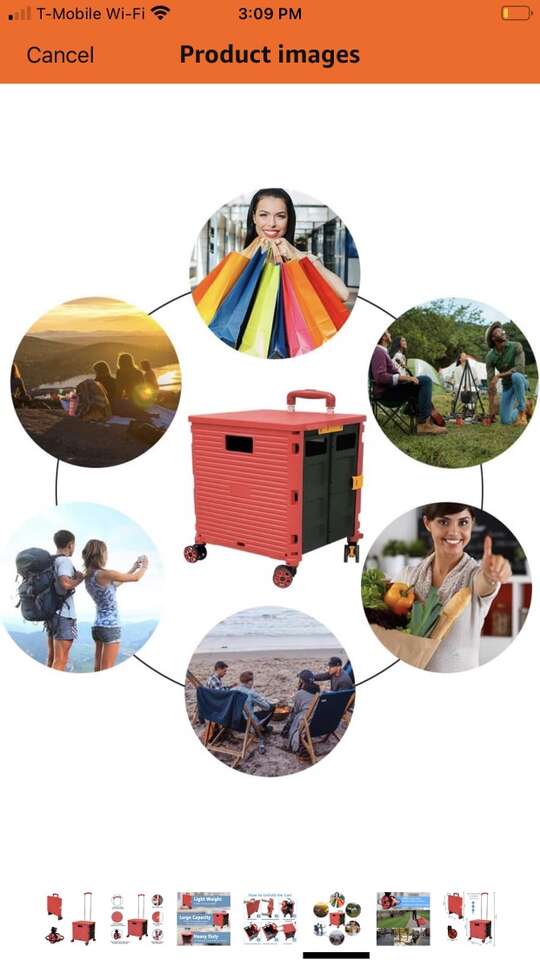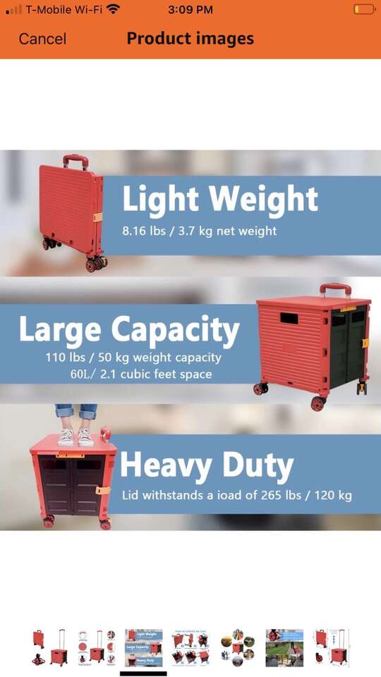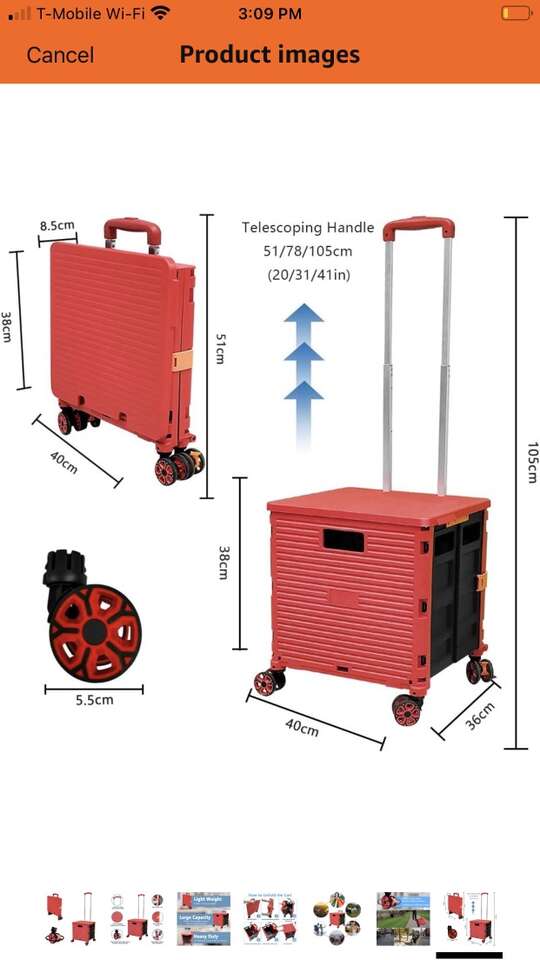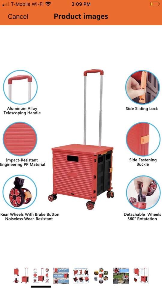 Red Collapsable Double Wheels Heavy Duty Crate Great for Travel, Shopping, Moving, and More Expandable Handle Bar